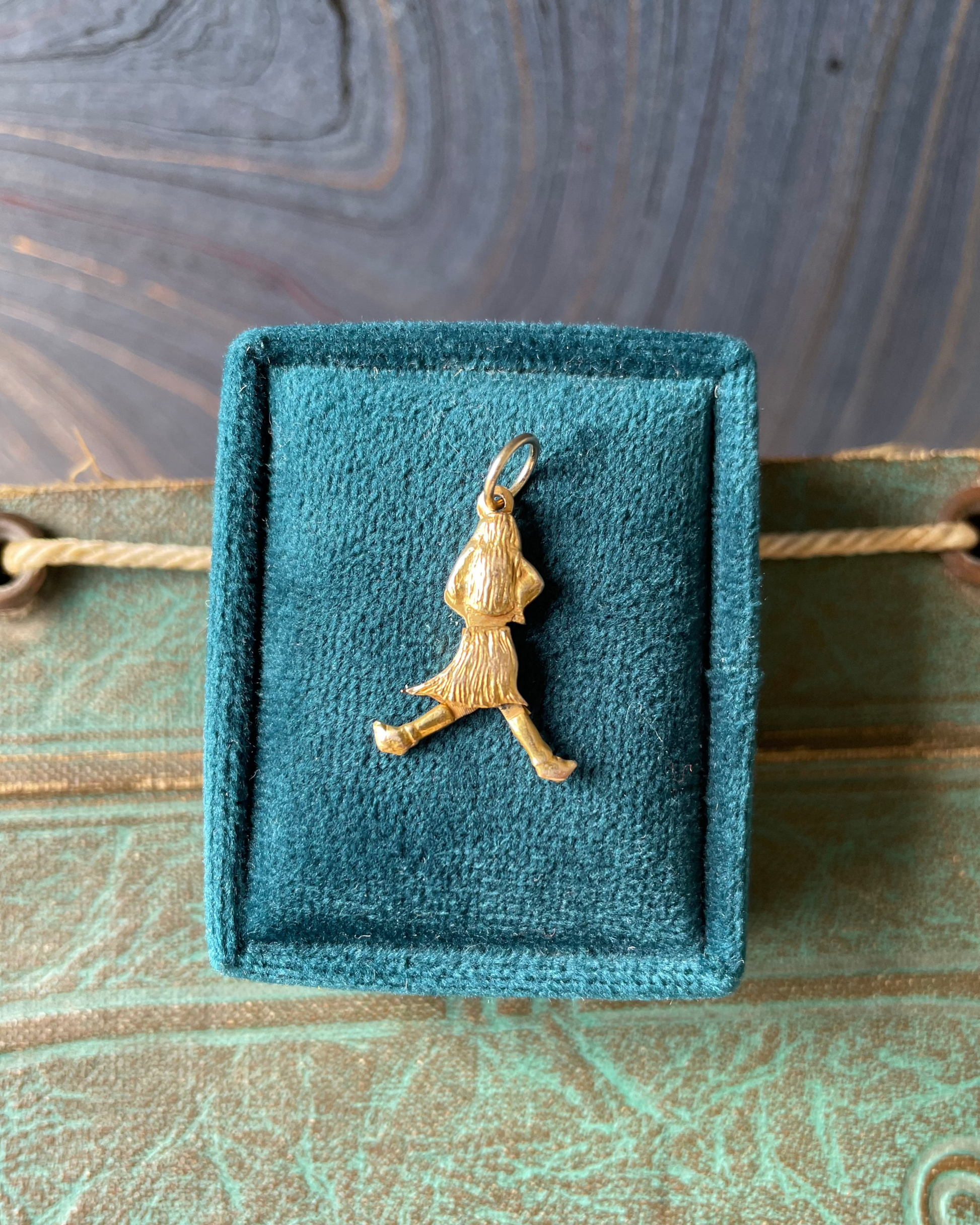 Luau time! This 12k yellow gold articulated hula woman charm is jointed at here waist and each of her legs is independent. Length> 1". Width 3/8". 1.74g. XRF -12.5k. Estate.