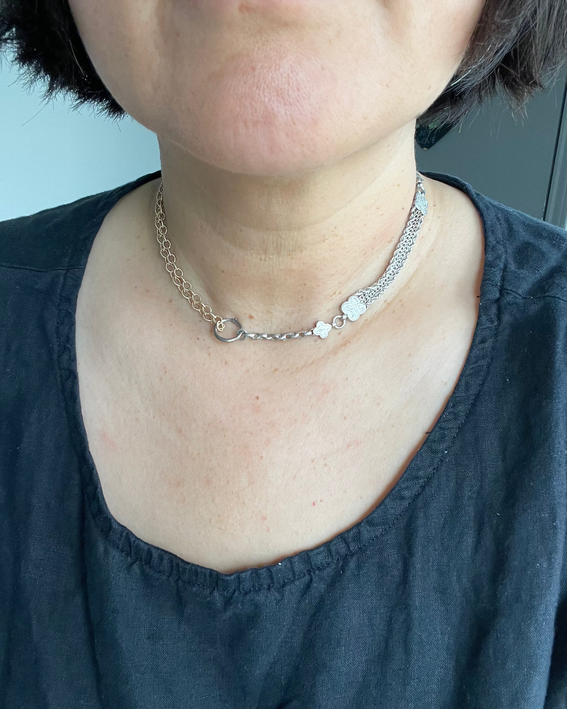 This is a very pretty sterling engraved watch fob chain. Featuring rope and foxtail chains flanked by engraved quatrefoil stations and finished with a big spring ring and loop. Great length for use as a necklace extender, but also as a bracelet. Length - 7 1/8". Width - 9.6mm. XRF - 92.5%, some variance throughout piece. 10.11g. Assume very vintage/antique.